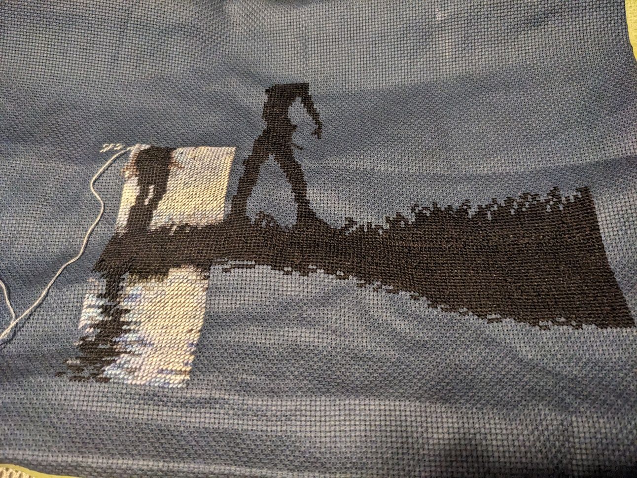 I have been using a white pencil crayon to help with my counting issues. I had to take some stitches out before I could make more progress on this piece, but I did do quite well despite that.